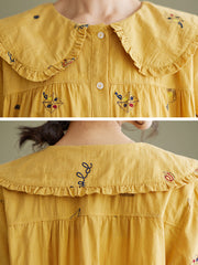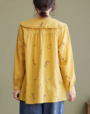 Plus Size Women Cotton Linen Long Sleeve Spring Shirt
