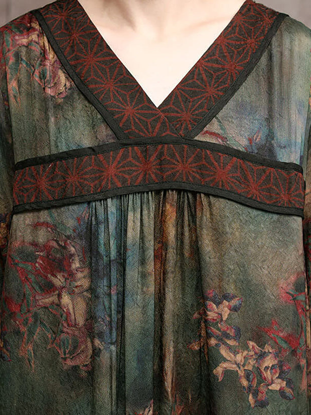 This is a beautiful and flowy maxi dress that is perfect for any summer or autumn event! It features a causal, retro print with flowers and has a draped, v-neck design. The dress is made of rayon material and has two pockets on the sides.